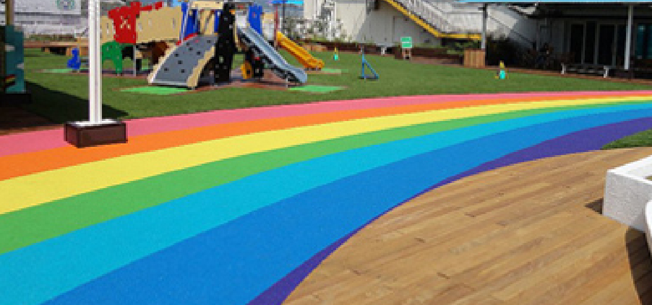 - EPDMカラーチップ舗装に加え、新しいRHカラーチップ舗装を取り揃えています。